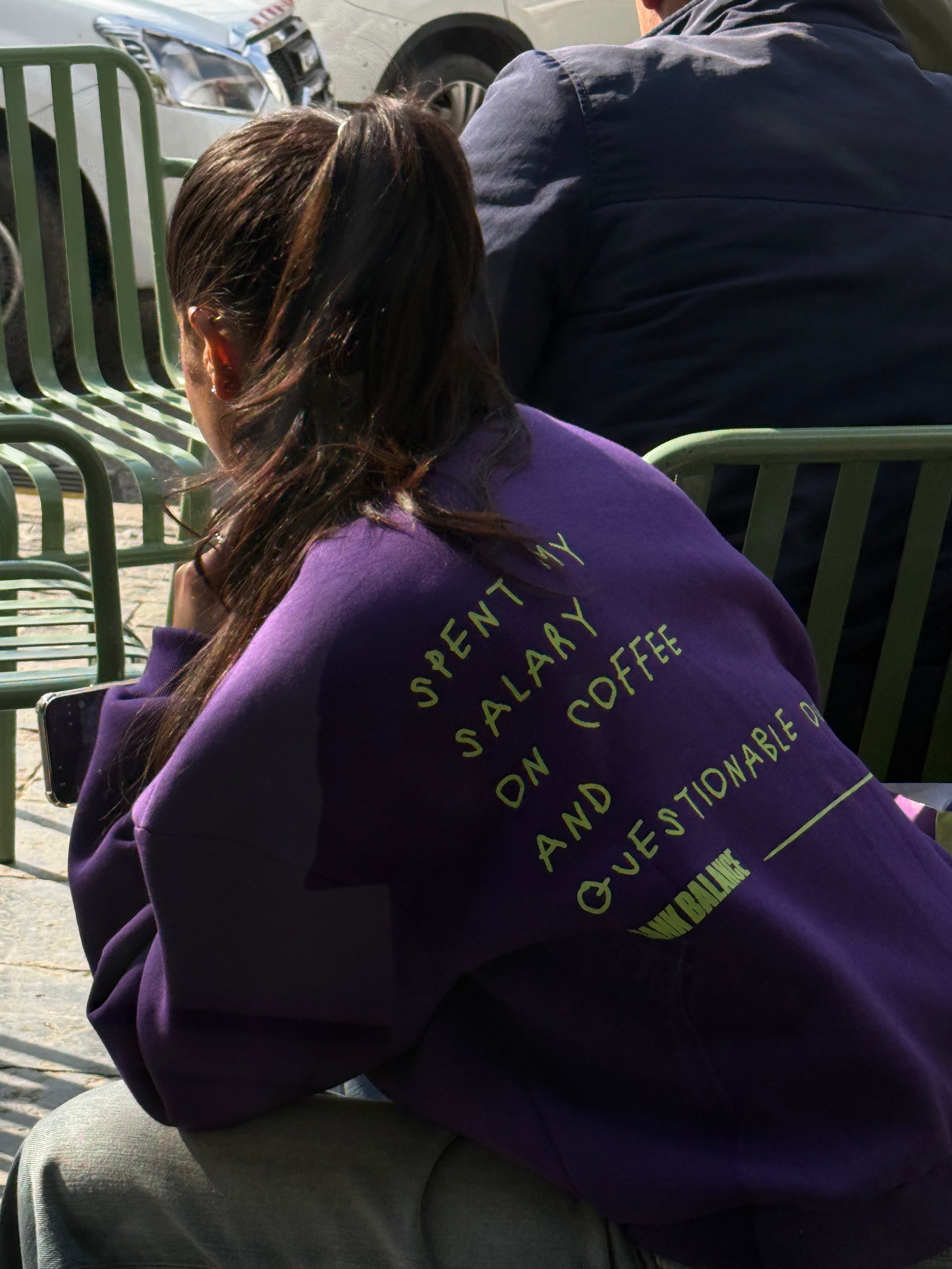 The “Spent My Salary on Coffee and Questionable Outfits” crewneck is made for the over-caffeinated, overdressed, and proudly irresponsible. Soft, heavyweight, and built for everyday wear from morning coffee runs to late-night regrets.