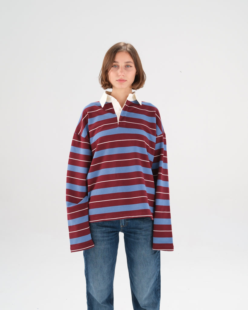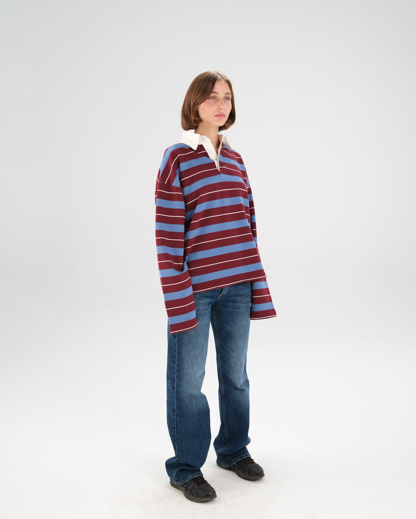 A modern take on a vintage classic. Crafted from heavyweight cotton with bold contrast stripes and a crisp collar, the Rugby Polo blends timeless prep with a laid-back street feel. Designed for an oversized fit that moves with you—easy, effortless, and endlessly versatile.